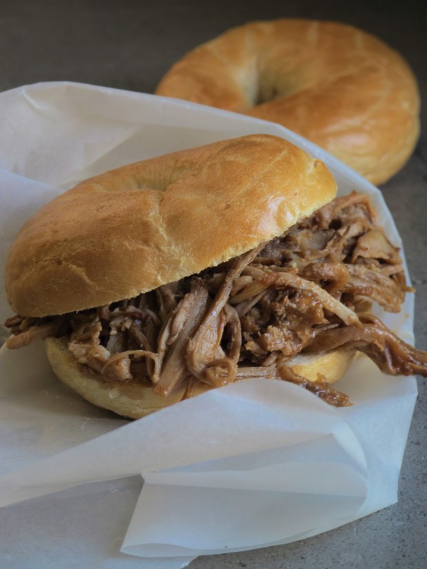 When it comes to the actual “pulling” of the pork many recipes suggest using a couple of forks, but I like to get in there and use my hands. It may be a whole lot messier, but doing it by hand gives you more control over the texture of the pork and it makes it easier to identify any fat or gristle that you may want to remove.
