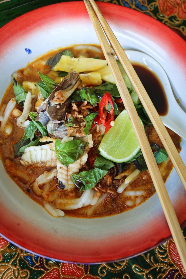 Also known as Penang Laksa Lemak, Siamese Laksa is unfortunately somewhat eclipsed by Penang’s most famous laksa – Assam Laksa. More’s the shame as Siamese Laksa is wonderfully aromatic and its rich broth isn’t as divisive as the hallmark sour fishy “love or loath” broth of Assam Laksa. In fact, given the choice, I would opt for a bowl of Siamese Laksa every time!