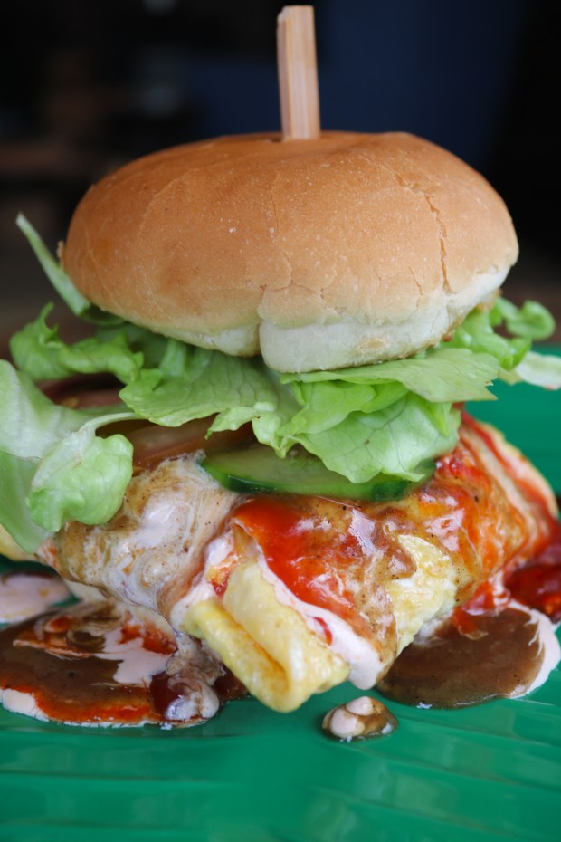 13. Served immediately, or for a truly Ramly Burger take-away experience, leave the burgers wrapped in wax paper for 10 minutes before eating.
