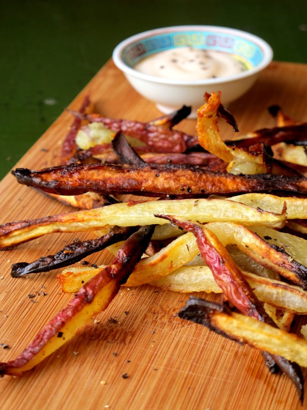 The nutritional value of sweet potatoes aside, what ultimately makes them so popular is their versatility; they can be used to make soup, mashed, microwaved, oven-roasted, gratinéed or glazed, although the latter is most definitely not for those of us avoiding sugar! Currently, however, my favourite way of preparing sweet potatoes is to use them to make skinny fries.