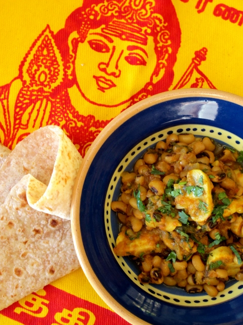 Lobia Khumbi (Black-eyed Beans with Mushrooms)Your rogan joshs and butter chickens aside, Indian food is perhaps the most karma-conscious cuisine in the world. With a mind boggling array of vegan and vegetarian dishes to choose from, one is never short of tasty delights from the sub-continent. An Indian feast is always a great option for a dinner party as the multiple dishes needed, allow you to cater for a wide range of tastes and needs, all without compromising the overall success of the meal. Generally speaking, whether the dish be vegan or laden with meat, all Indian food goes well together.